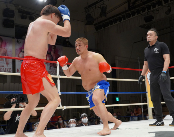 クルーザー級試合時の植村(右/2021年4月Krush)