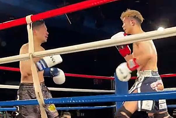 ヤーマン(右)が代打出場し、鶴田とエキシで打ち合った
