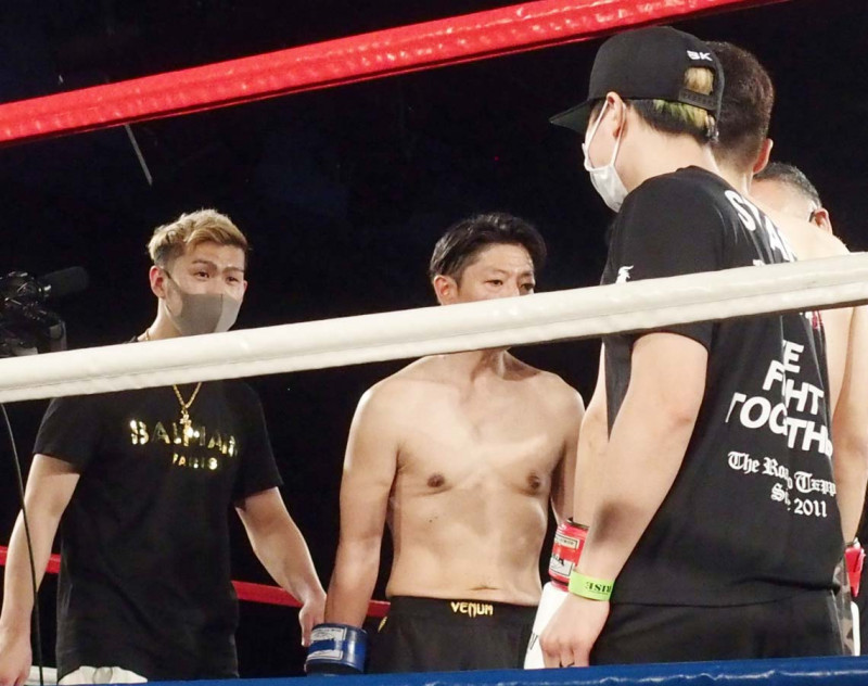 2、YA-MANと天心の目が合いYA-MANが近づく