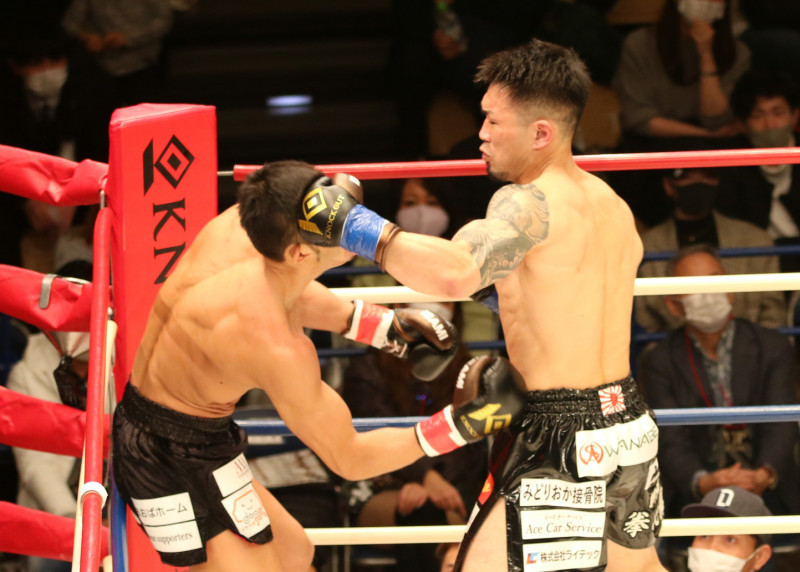 強烈な左右フックを繰り出しダウンを奪った田村(2021年3月)