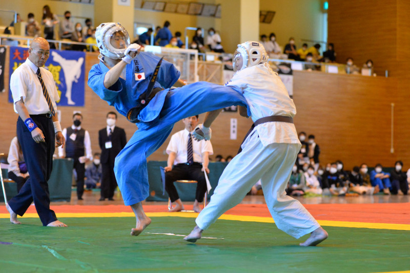 昨年度決勝で目黒は強烈な左中段廻し回転蹴りを決めた