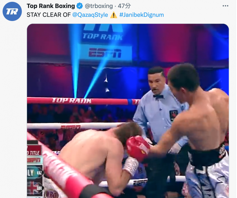 アリムハヌリのアッパーがヒットした瞬間、相手がかがんだ瞬間にアゴにヒット(TOPRANK Twitter)
