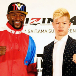 メイウェザーと拳を交える天心=19年大晦日