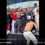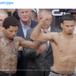 ロメロが王者デービスの前でマッスルポーズ(PBC YouTubeより)