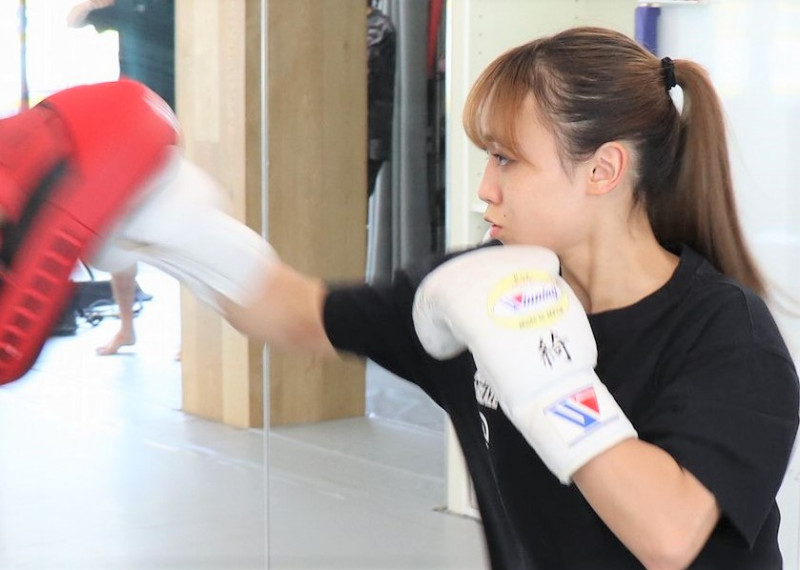 松谷は公開練習でパワフルなパンチと蹴りを披露した(c)K-1