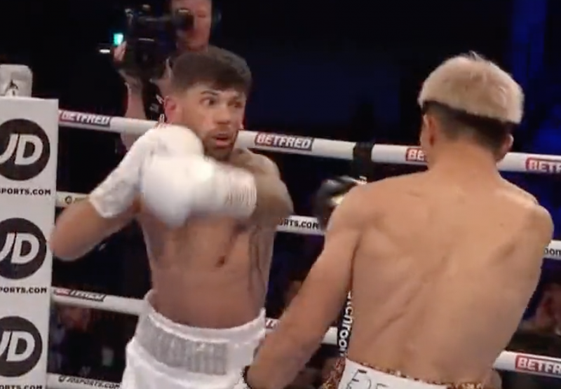 コルディナ(左)が尾川を2RKOで仕留めた(c)DAZN