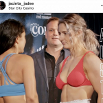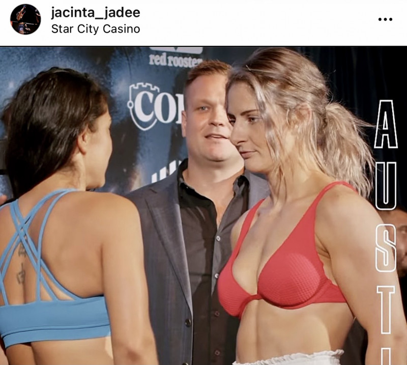 計量時、余裕の笑みを浮かべ相手を見据えるオースティン @jacinta_jadee
