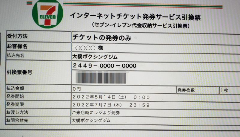 パソコンやスマホで購入すると、引換券が表示される。これをそのまま、もしくは印刷してセブンイレブンのレジに持ち込むとチケットが発行される
