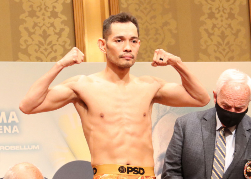 今回の計量、ドネアのマッスルポーズ