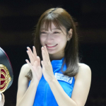 井上尚弥戦でプラカードを持つ人気グラドル雪平莉左。1ラウンド終了時のインターバル時のみ登場した。
