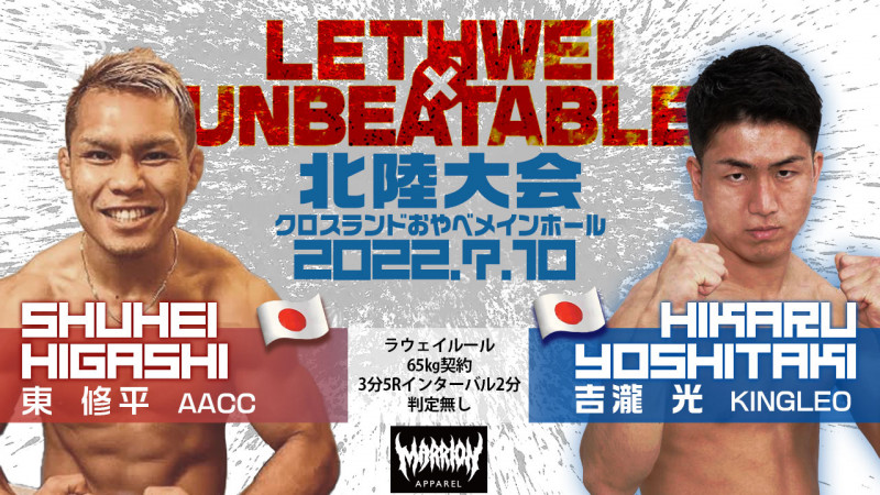 ラウェイルールで東修平(左)vs吉瀧光(右)が対戦する