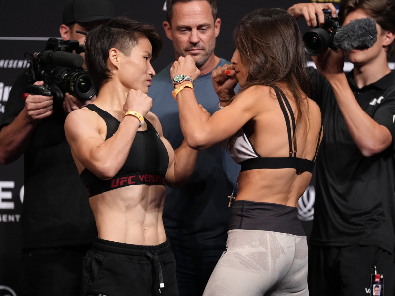ウェイリー(左)とヨアンナがファイティングポーズで睨み合うⒸUFC