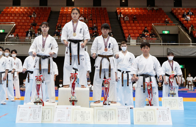 女子重量級 左から準優勝/八幡華菜、優勝/鵜沢菜南、3位/中野里咲、4位/本村愛花