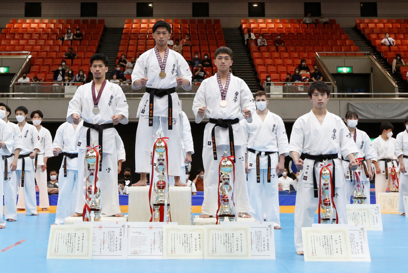 男子軽軽量級 左から準優勝/島田景虎、優勝/金子雄大、3位/山科直史、4位/助田空