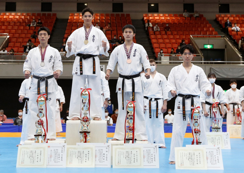 男子軽量級 左から準優勝/小林健人、優勝/飯塚翼、3位/坂田龍星、4位/平沢拓巳