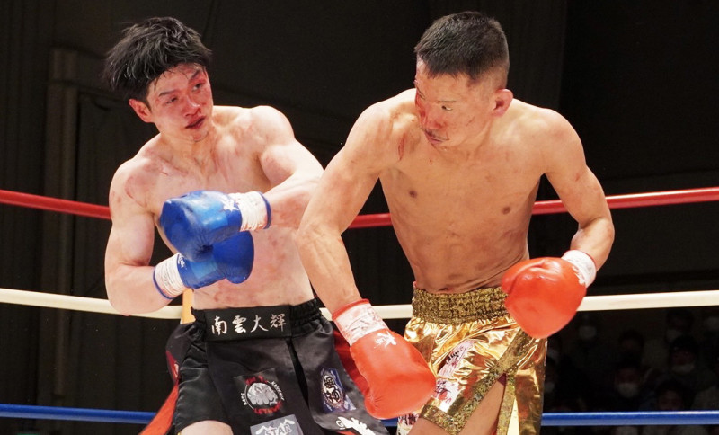 第1試合から南雲(左)と死闘を演じた堀井(右)