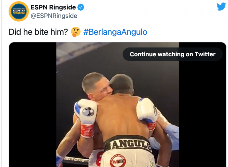 噛み付くシーン、耳は外したようだ(ESPN Ringside twitterより)