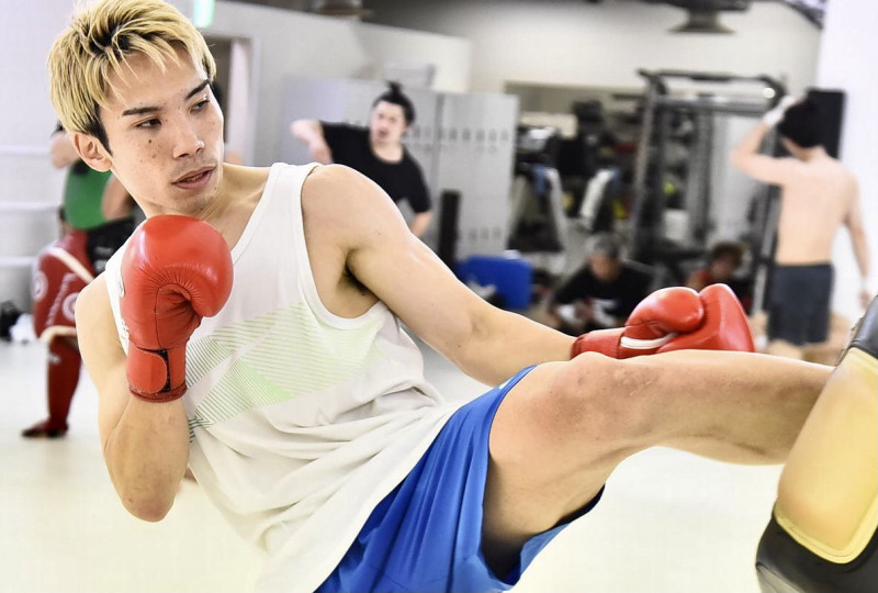 得意の左ミドルキックを打ち込む佐々木(C)K-1