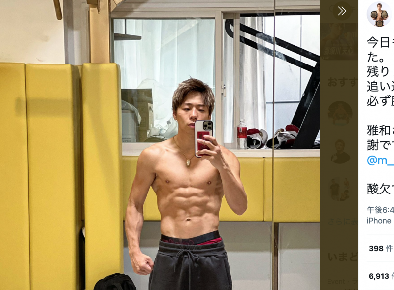 4月18日の武尊のバキバキボディ(武尊Twitterより)