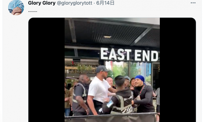警備員を突き飛ばす暴漢ヘビー級ボクサー・フランシスの右がヒット!(@gloryglorytottより)