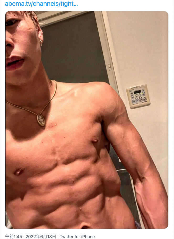 武尊、最後の水抜きと究極のバキバキボディを披露した(武尊Twitterより)