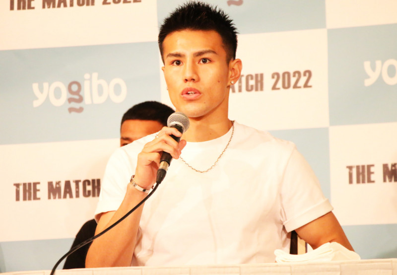 会見に出席する海人