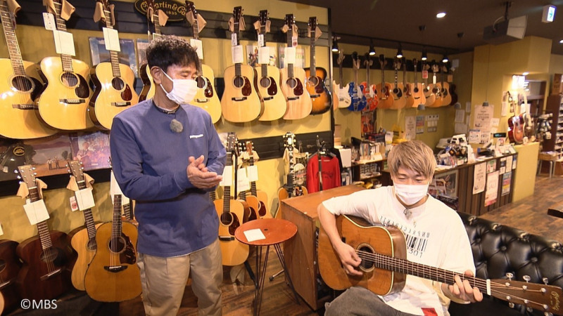 ギターの弾き語りをする武尊(右)、と浜田雅功