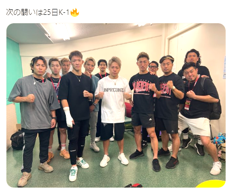 武尊が試合後、あえて記念写真をみんなで撮影(K-1GYM 相模大野 KRESTのTwitterより)