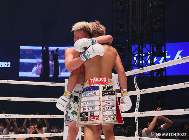 武尊と抱き合い涙する天心