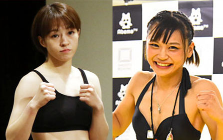 ツヨカワの美女ファイターとして人気のMISAKI(右)と中村未来 (左)が対戦する