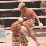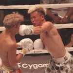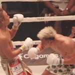 4、左ストレートが武尊のアゴにヒット!武尊の左フックがストップされた