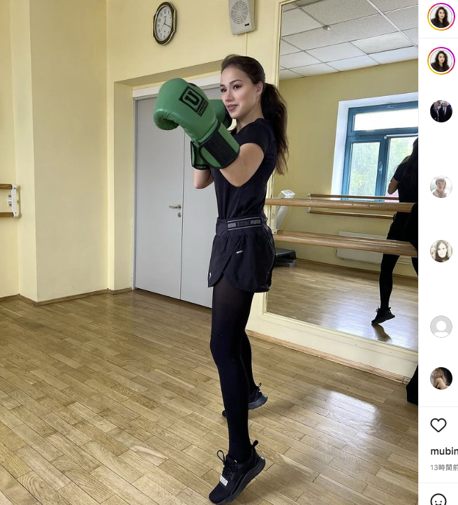 ザギトワがボクシンググローブをつけ「新たな準備」と投稿した。(@azagitovaより)
