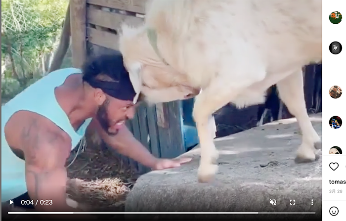 ヤギと首のトレーニングで鍛える(Elvin Leon Brito インスタより)