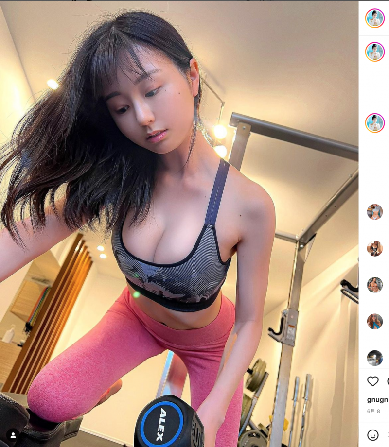 SNSで度々筋トレ姿を公開する(くりえみインスタより)