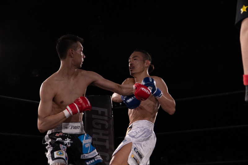 安彦(右)は相内(左)とパンチを打ち合った(c)RISE