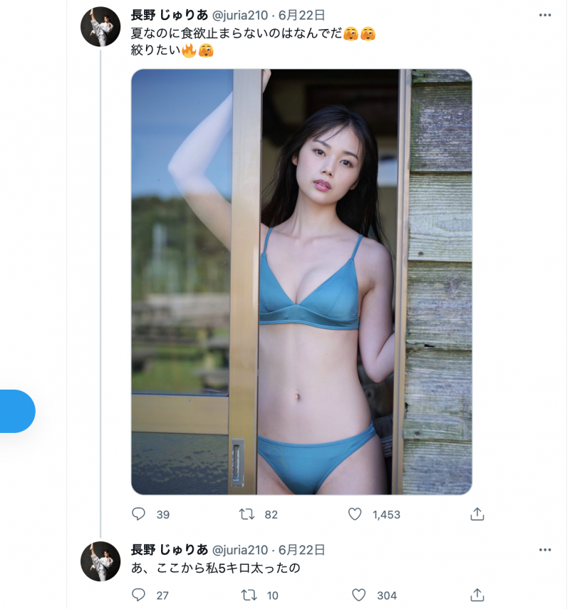 ここから5kg太ったと自身のSNSで告白。写真は昨年10月25日に発売の週プレデジタル写真集『実は私、○○なんです』