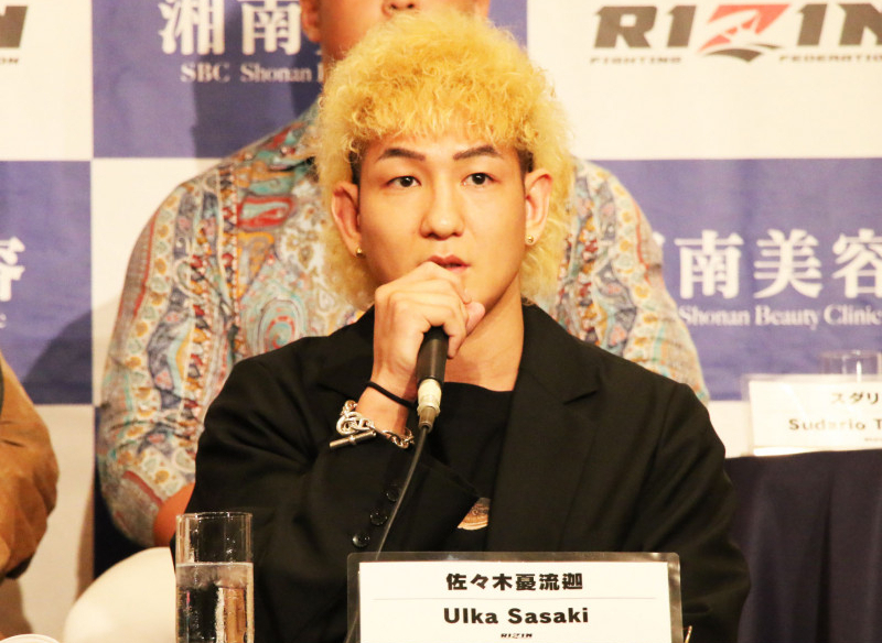 会見に出席する佐々木