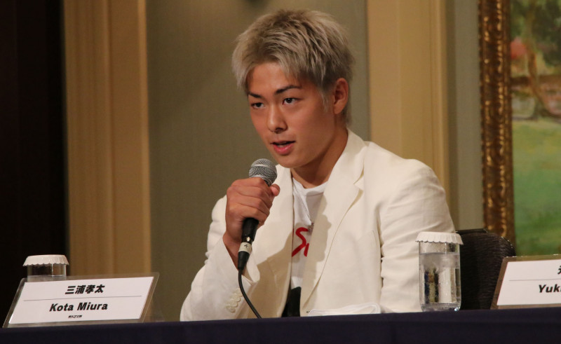 会見に出席する三浦