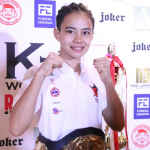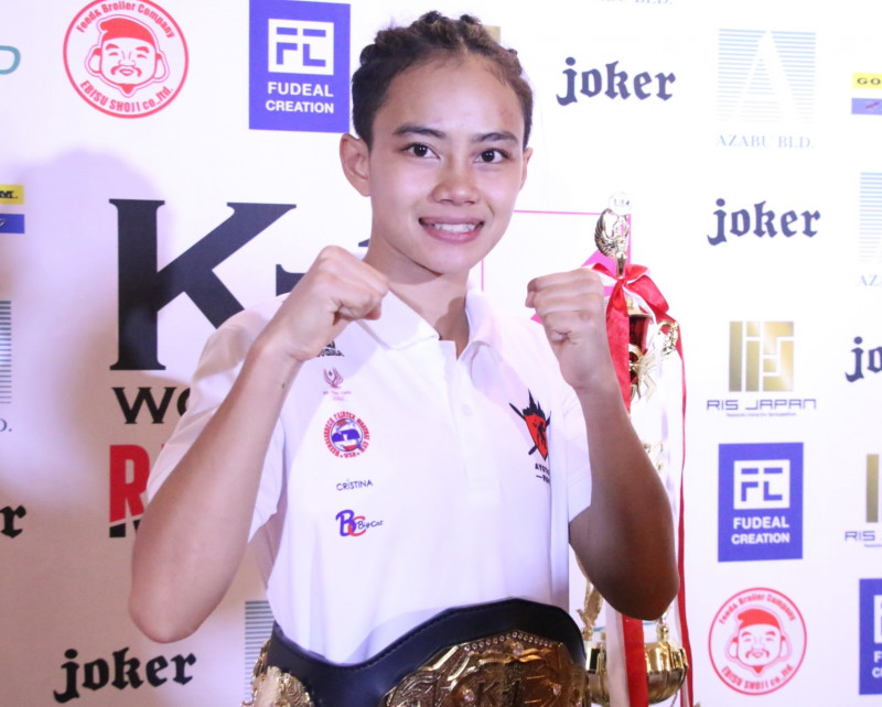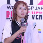 初代K-1 WORLD GP女子アトム級王者となったパヤーフォン。会見では笑顔