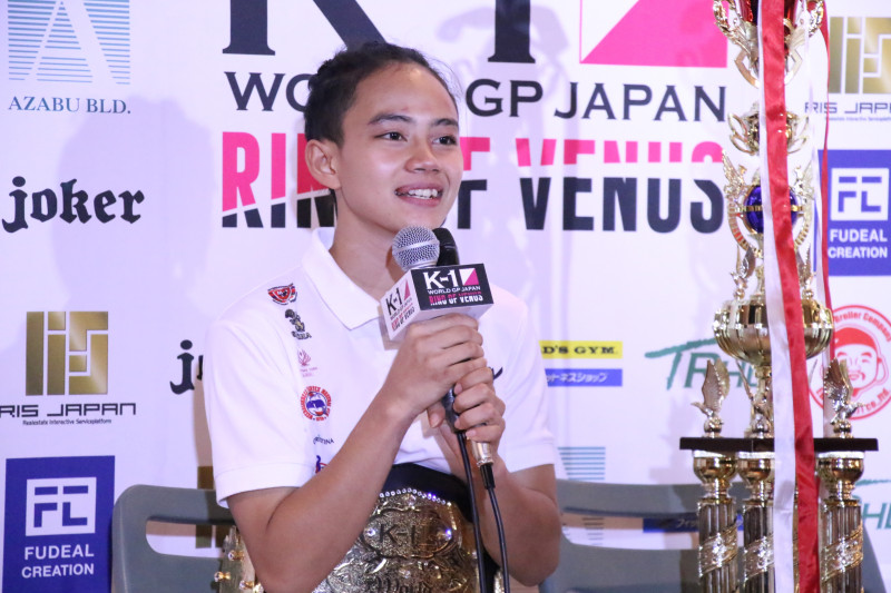 試合後、ずっとベルトを腰に巻いていたパヤーフォン