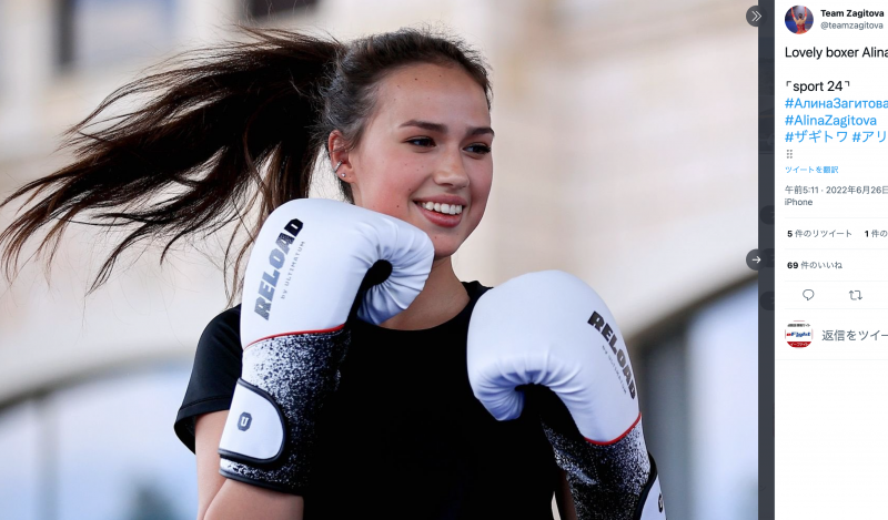 ボクシングの練習を公開するザギトワ(ザギトワ インスタより)