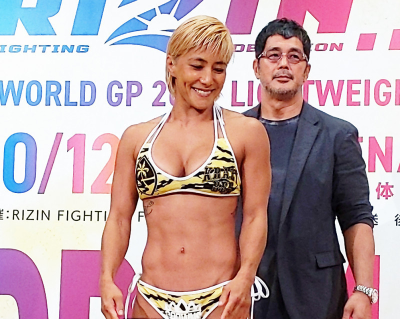 19年10月、山本美憂の計量、虎柄ビキニ