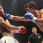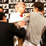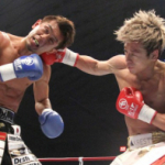 皇治のパンチが武尊にヒット、打ち合いは大いに沸いた=18年12月タイトル戦