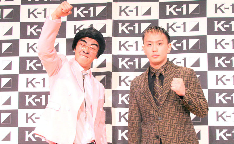 壬生狼一輝(左)が、井脇ノブ子コスプレで登場。対戦相手の峯大樹(右)はあきれ顔