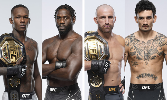 (左から)イズラエル・アデサンヤ、 ジャレッド・キャノニア、 アレクサンダー・ヴォルカノフスキー、 マックス・ホロウェイ(WOWOW/Getty Images)