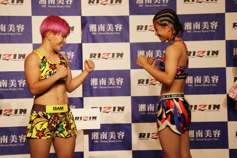 向かい合う両者、お互いに笑顔