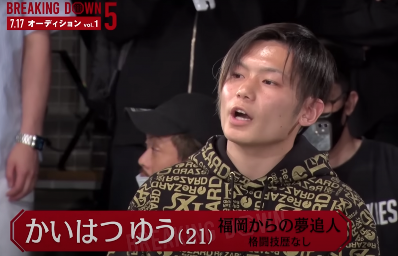 かいはつは前回の瓜田戦で乱入。今回はオーディションに挑んだ(朝倉未来YouTubeより)