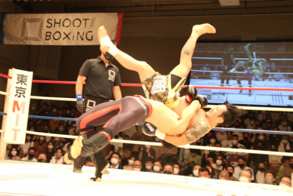 見事なジャーマンスープレックスを決めるイモト(2022年6月)