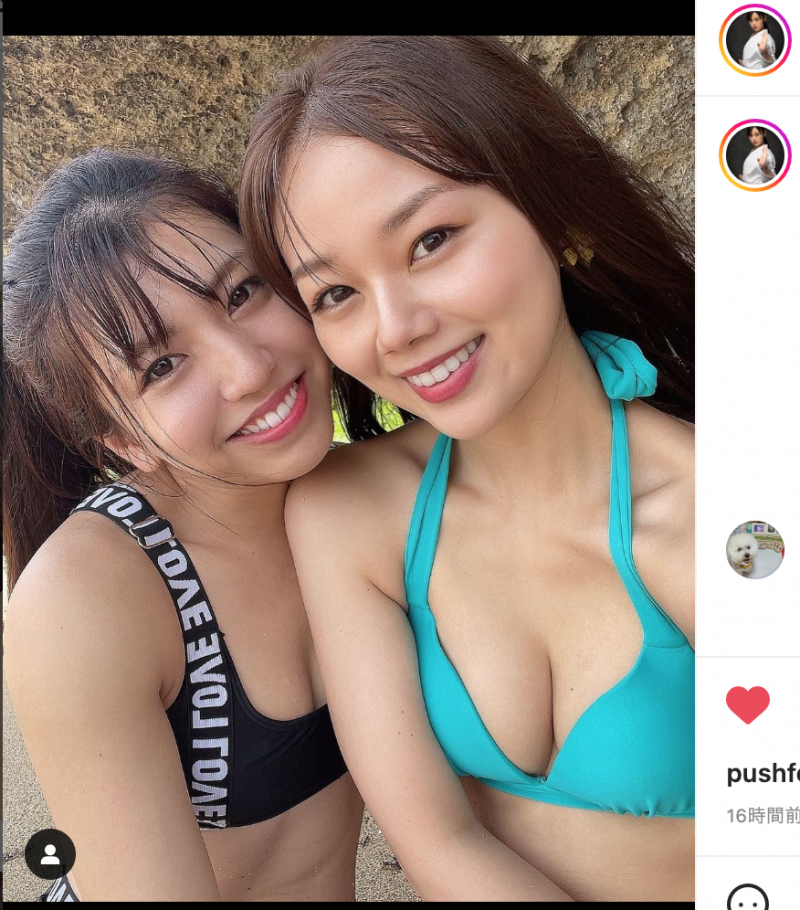 ぱんちゃん璃奈(左)と長野じゅりあがRIZINの観戦に沖縄入り。