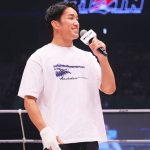 挨拶でリングに上がった朝倉海。右手の包帯が痛々しい©️RIZIN